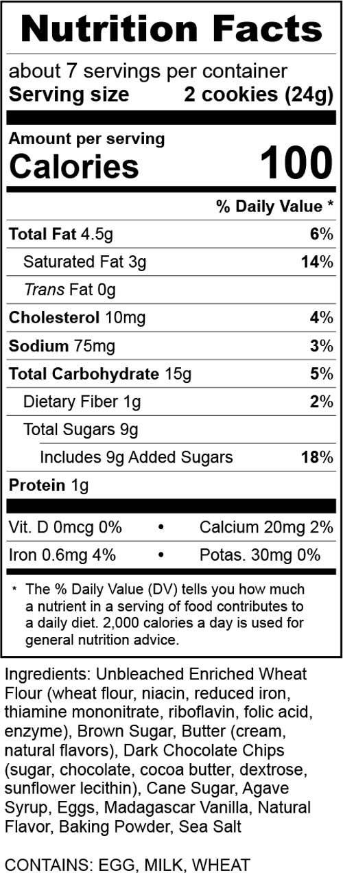 A classic cookie filled with semi-sweet milk chocolate chips and accented with Madagascar vanilla.