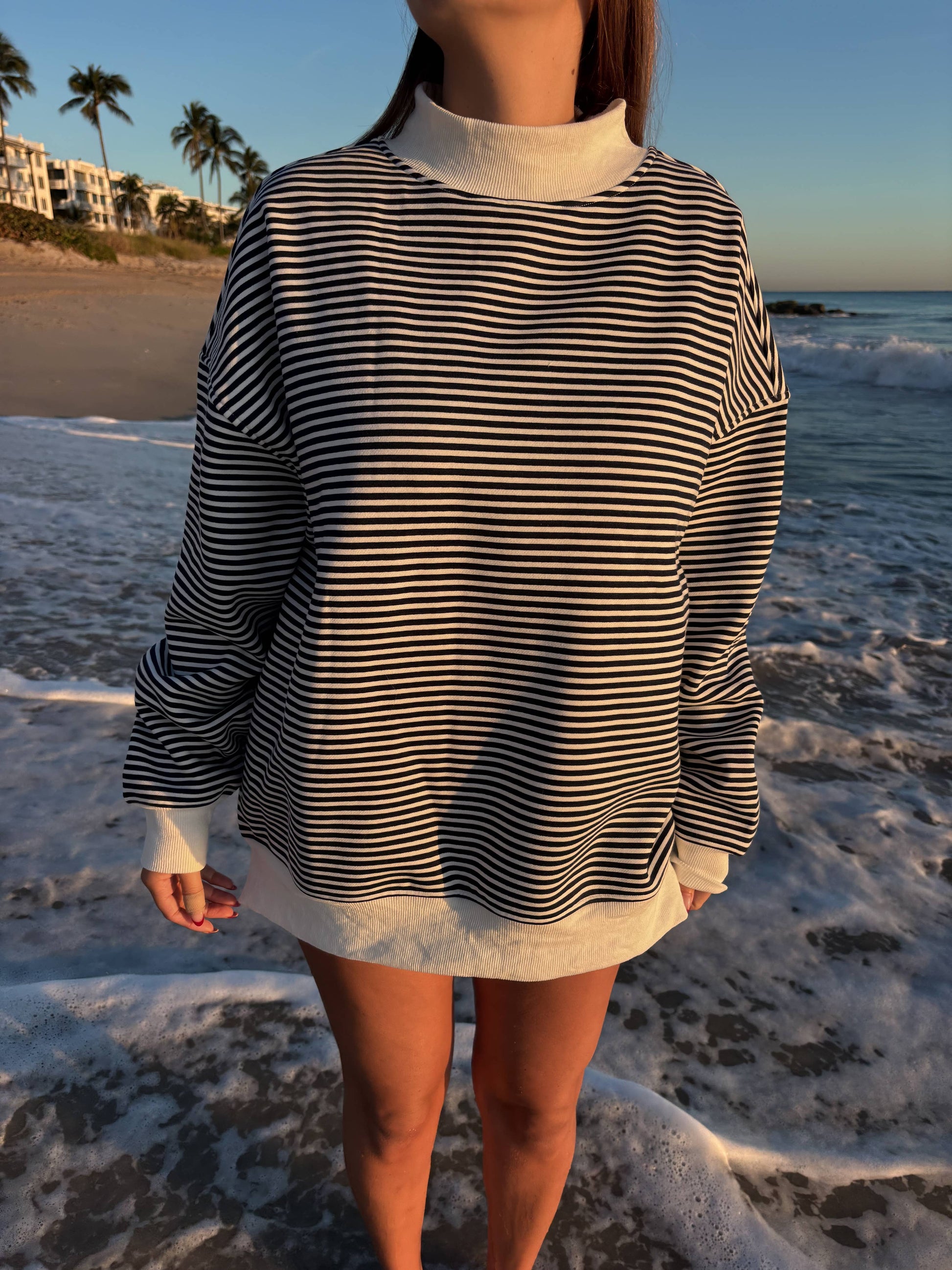 Navy and White Stripe Mockneck Sweatshirt