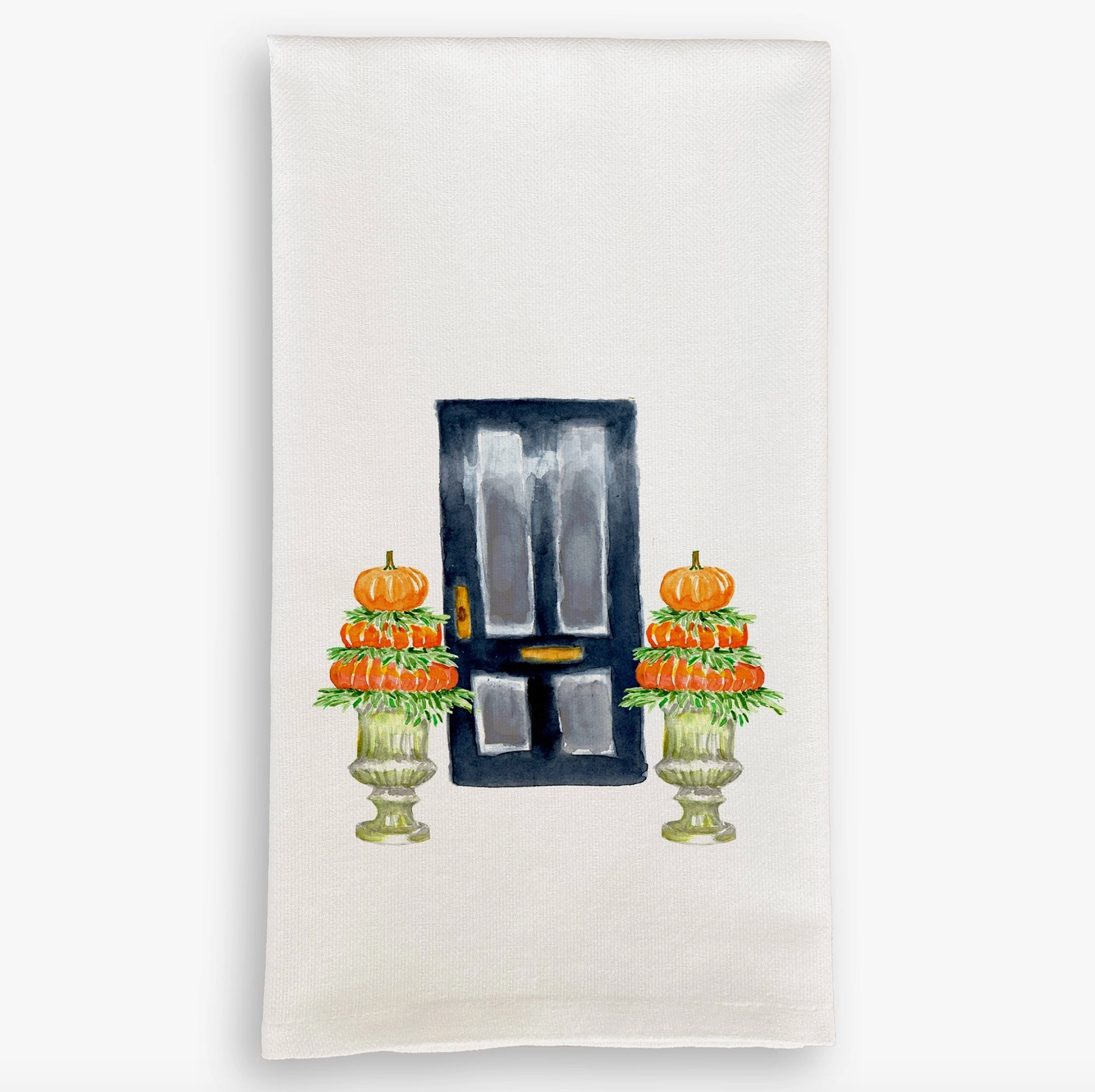 Fall Door with Pumpkin Topiary Linen Tea Towel - French Graffiti