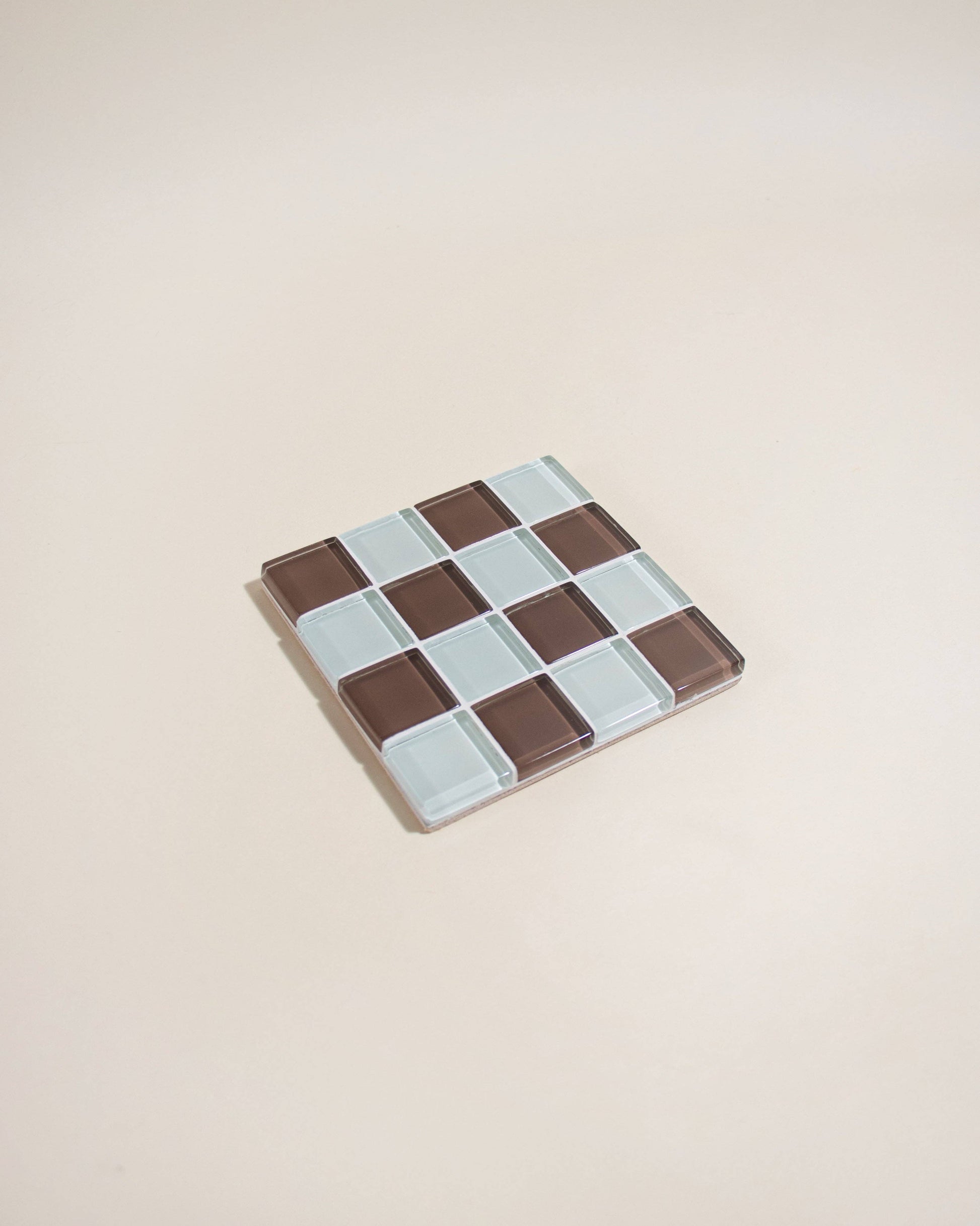 Glass Tile Coaster Checkered - Classic Milk Chocolate - Subtle Art Studios