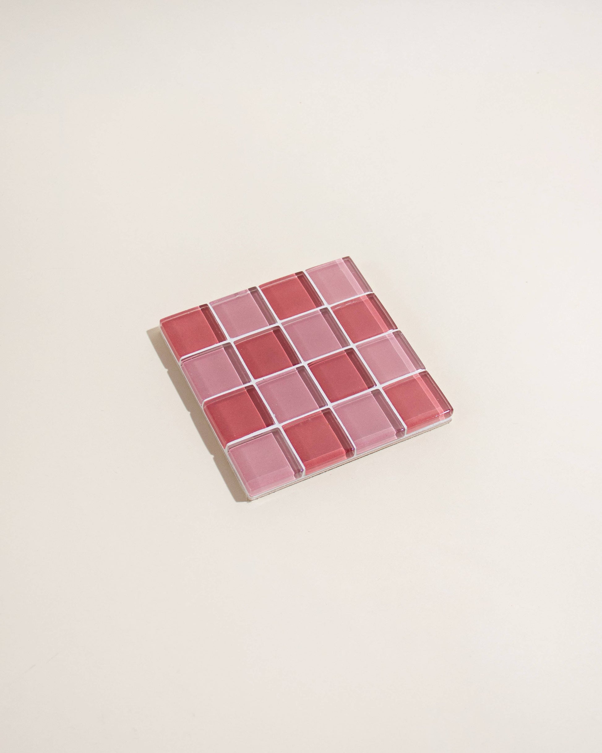 Glass Tile Coaster - Pink/Pale Pink Check