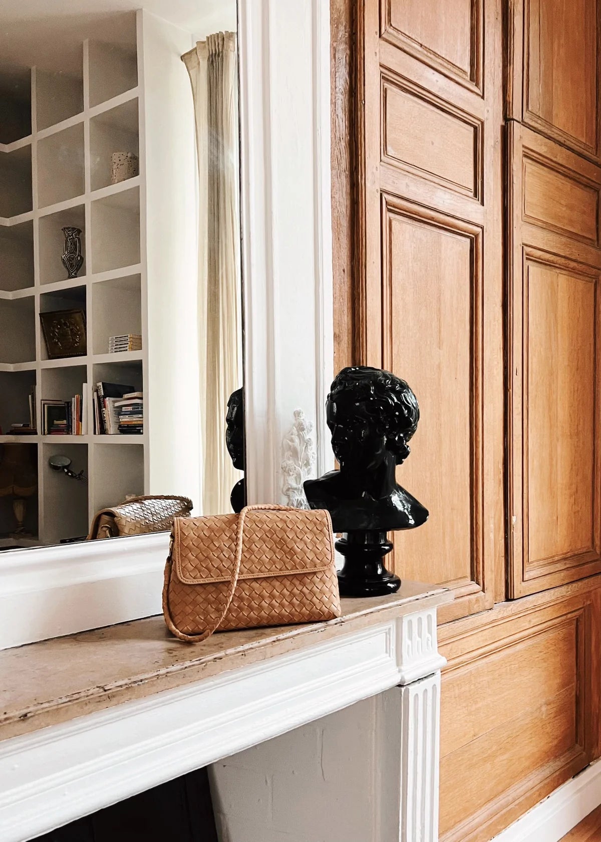 A classic flap bag inspired by the iconic ‘50s style, updated in our carré leather. With a braided strap and two inner compartments separated by a leather panel. Perfect for year round—wear it over a trench or knit in the fall and a silk blouse in the spring.