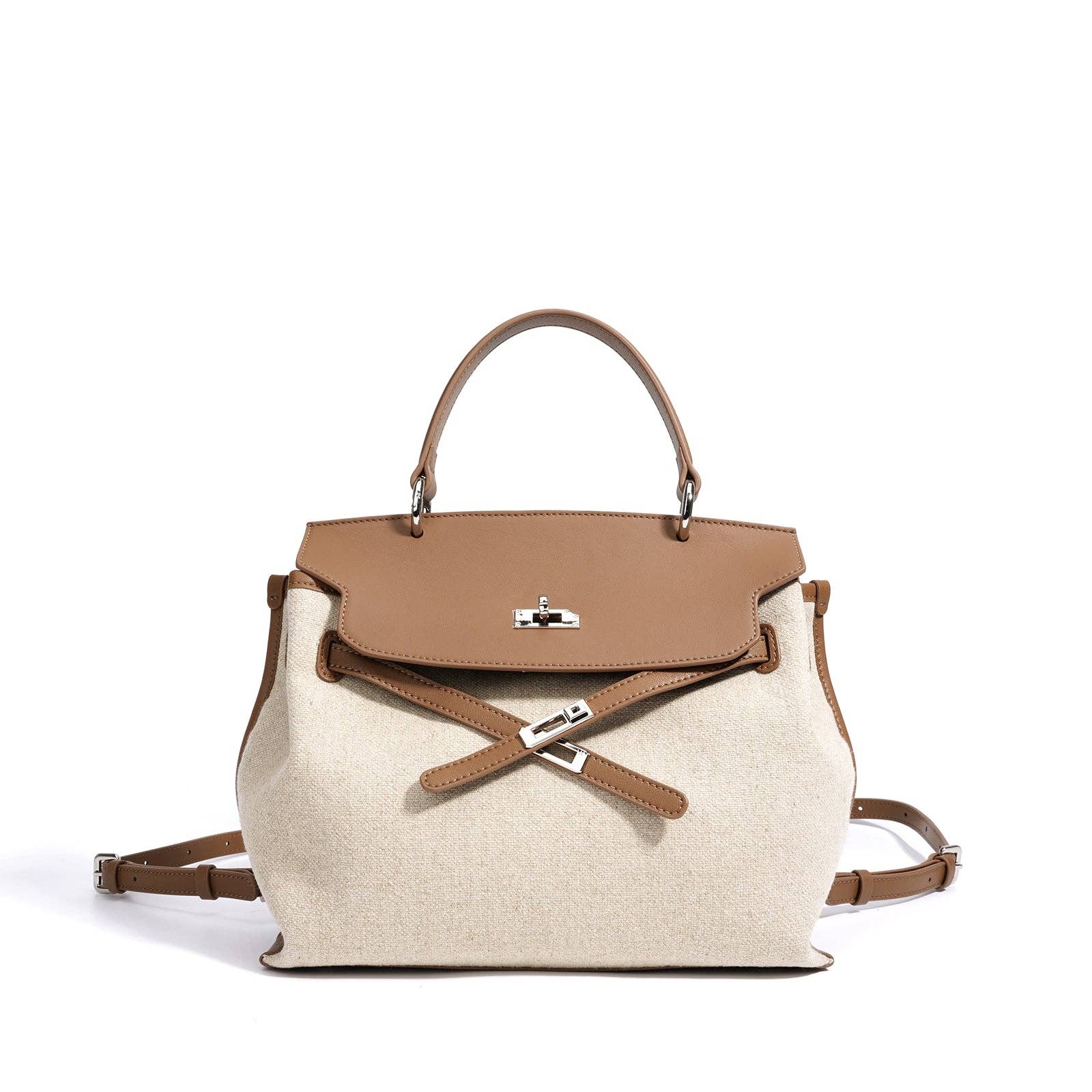 Newport Convertible Bag An elevated leather and linen bag with a classic, old-money aesthetic. Designed with a structured top handle and convertible straps that allow for crossbody or backpack wear. Finished with silver hardware. Interior includes a zipper pocket and slip pocket for organization. A refined, versatile style with strong luxury appeal. Key Features: * Genuine leather and linen * Silver hardware * Top handle * Convertible crossbody and backpack straps * Interior zip pocket * Interior slip pocket * Timeless, high-end design