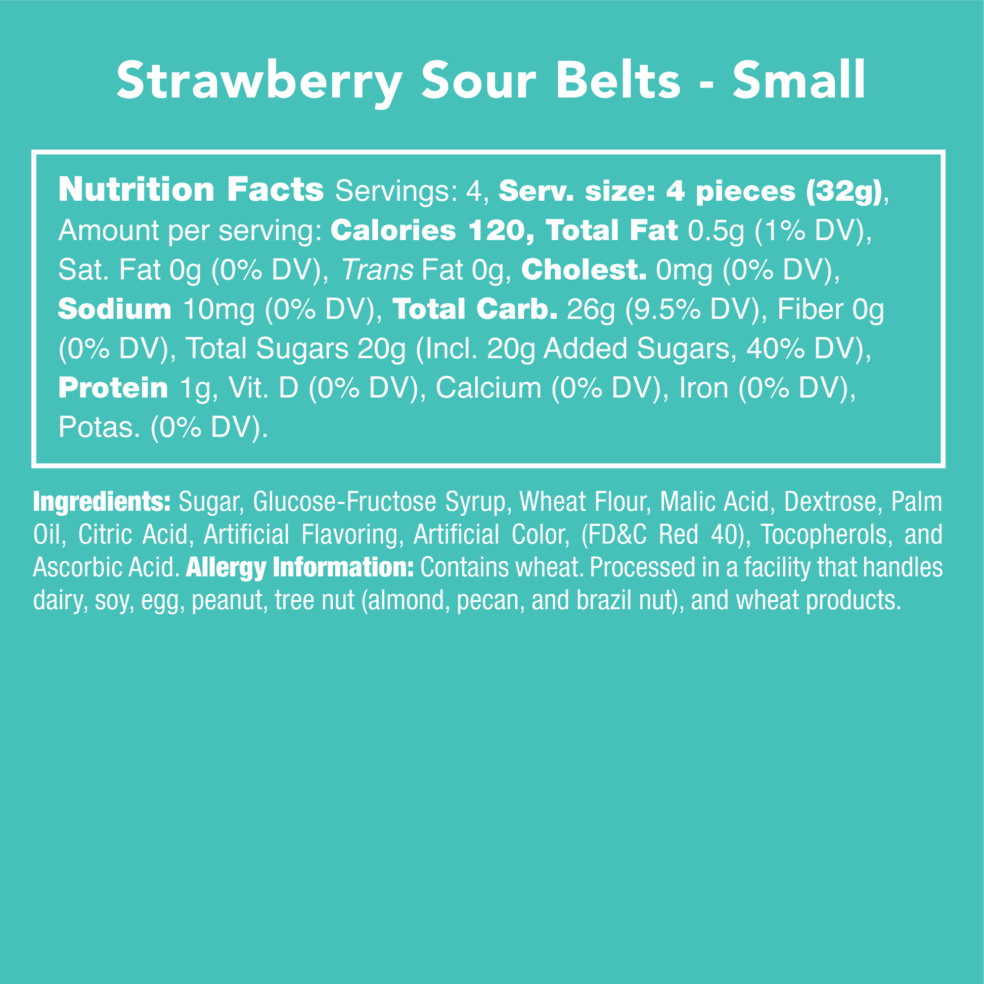 You will love the aroma of freshly picked strawberries in these lightly sugar-sanded candy belts. Just enough sour to make your lips pucker and the right amount of sweet to make you want more! Super sour and Super packed with Strawberry flavor! These belts are delicious, and there are plenty to go around! Vegan friendly.