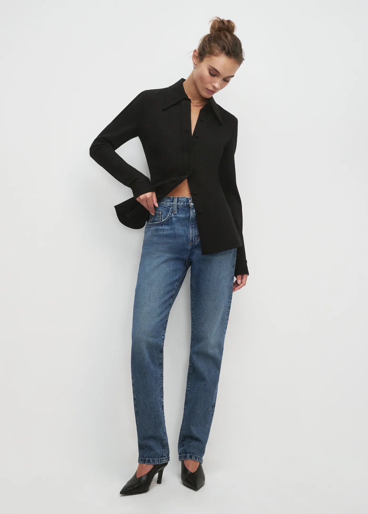 A long sleeve button-up made from ponte in a slim cut that's fitted at the waist. Our favorite part? The collar that's all style, no small talk.