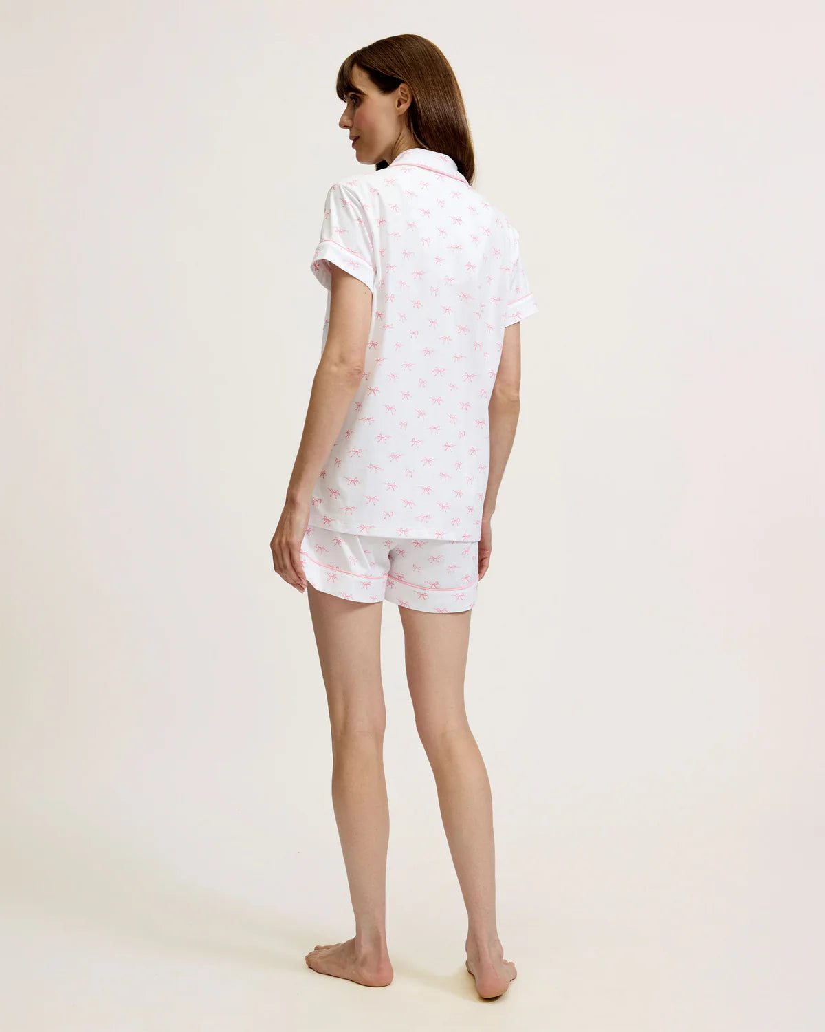 Women's Pima Short Sleeve Short Set in Blushing Bows - Petite Plume